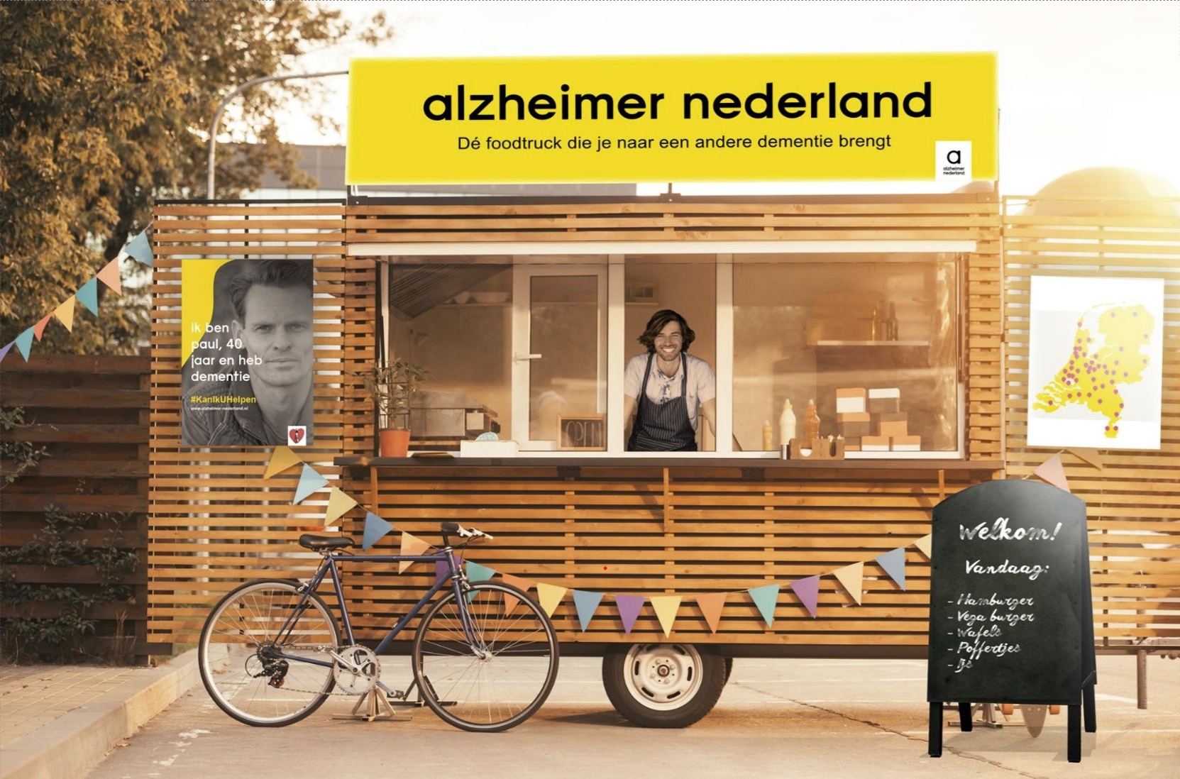 Naast een poster campagne hebben we een foodtruck ontworpen die ingezet kan worden rond de postercampagne maar ook op evenementen. Deze foodtruck zou bediend gaan worden door een begeleider en iemand met Alzheimer/dementie.