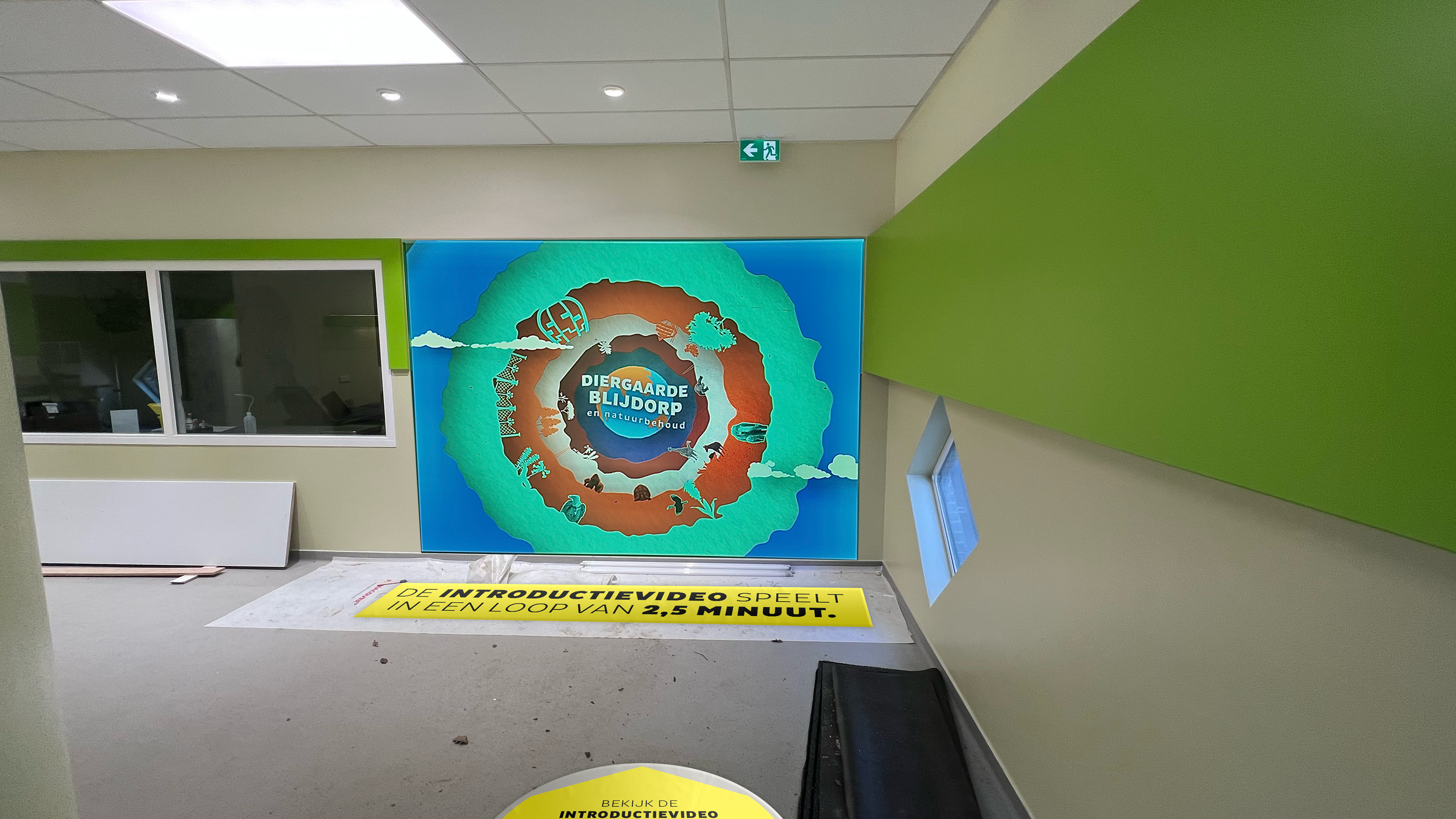 Een interactieve ruimte met een video-element waarin bezoekers kunnen leren over verschillende diersoorten, hun leefomgeving en wat Blijdorp doet om hier positief aan bij te dragen.
