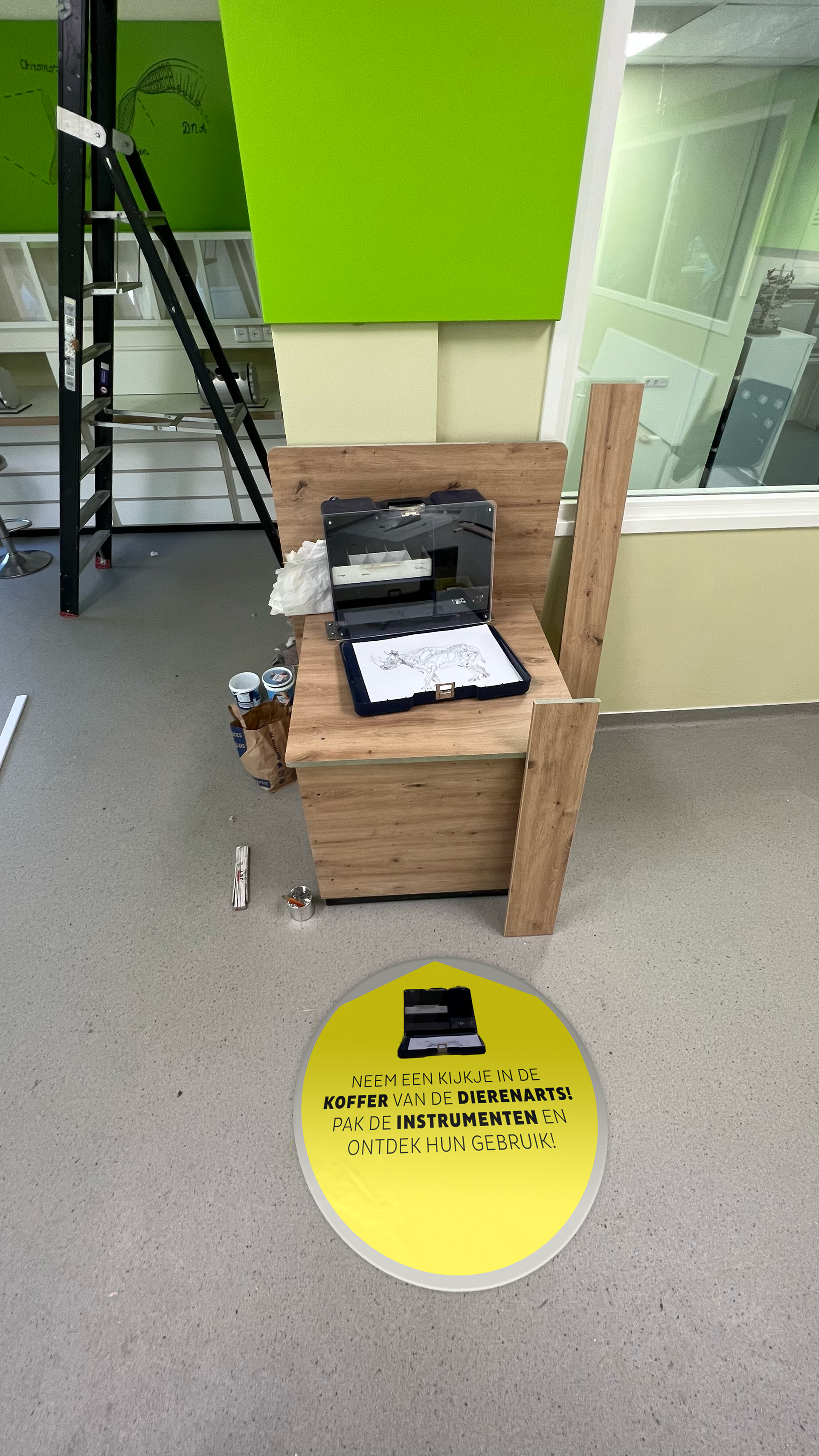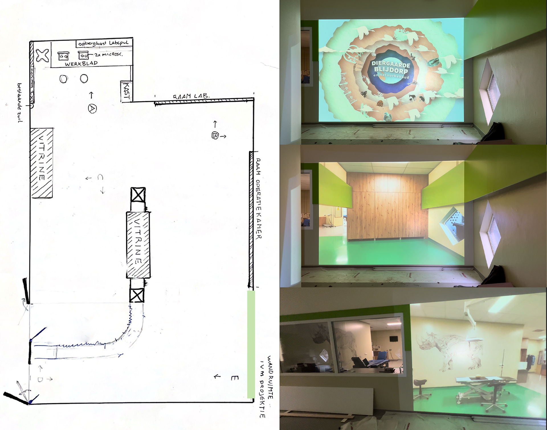 Hierbij kunnen bezoekers een kijkje nemen achter de schermen van de dierenkliniek en leren over onder andere de zorg die wordt gegeven aan zieke of gewonde dieren. Ik heb deze concepten gepresenteerd aan Diergaarde Blijdorp en heb samengewerkt met hun team om de ideeën verder uit te werken en te implementeren.