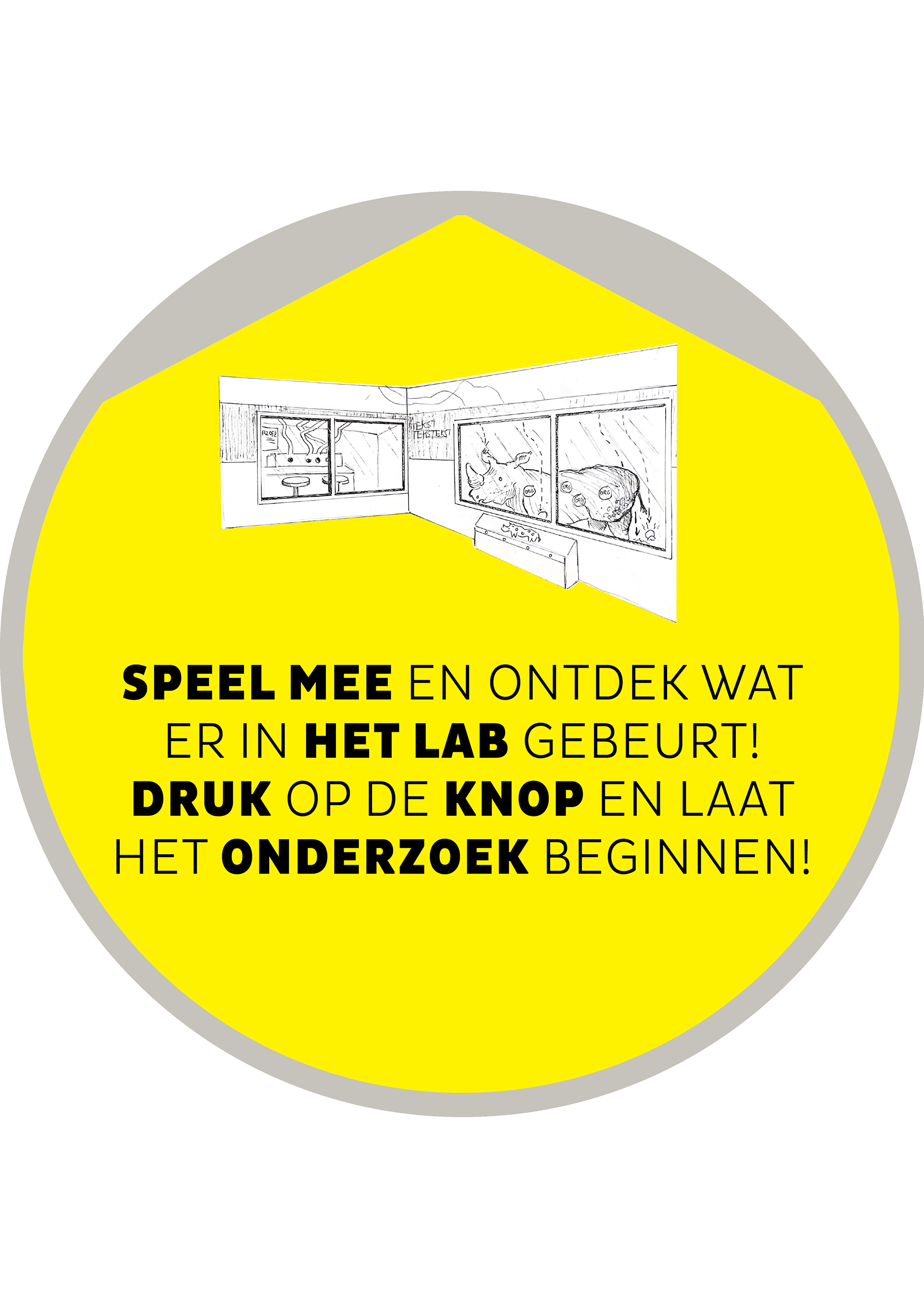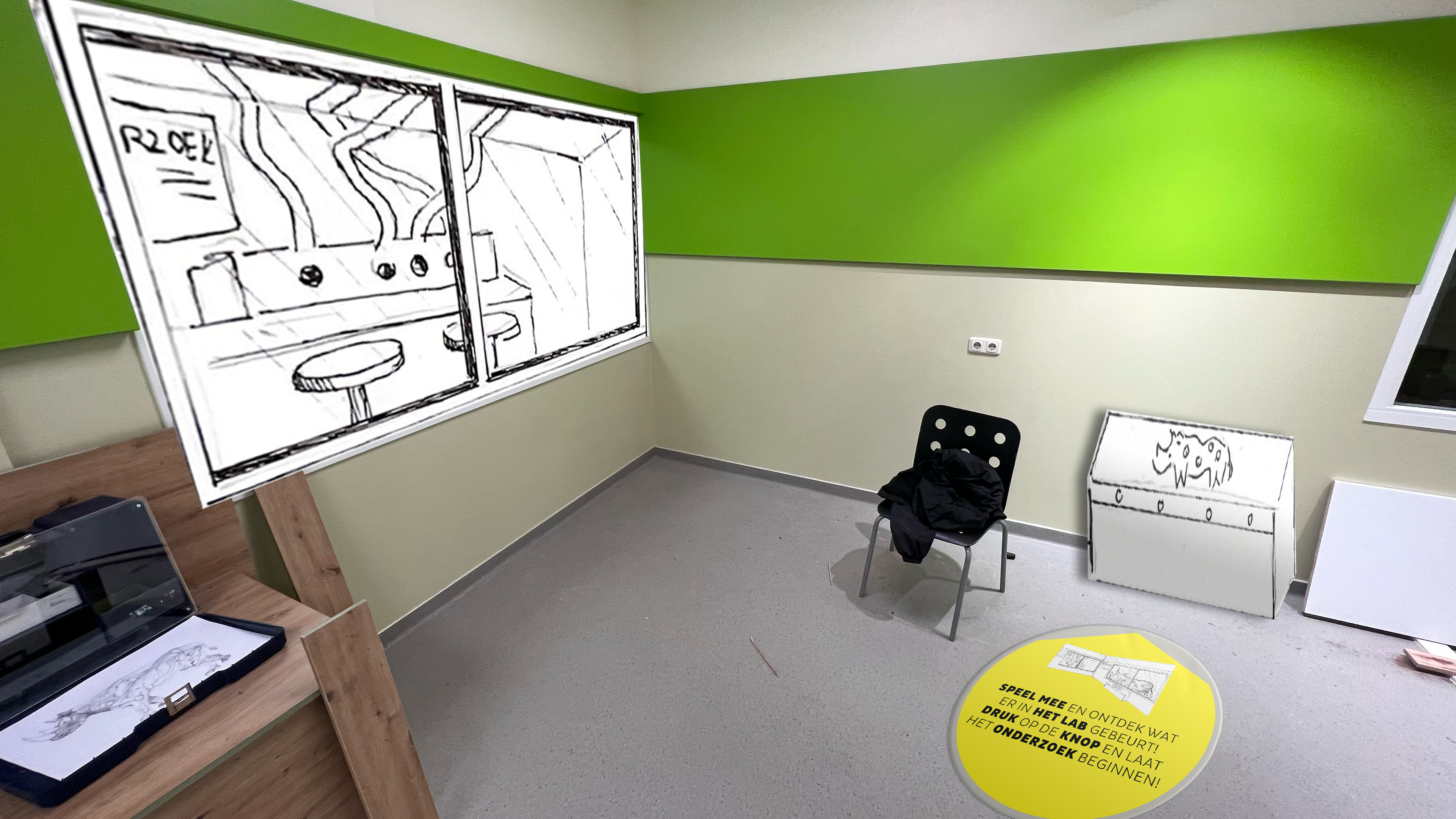 Voor de testen bij de doelgroep is het concept gereed, hoewel er na de ombouw van de ruimte nog enkele heropnames nodig zijn. Om een duidelijker beeld te geven van hoe de ruimte er uiteindelijk uit zou zien, zijn er naast de schetsen extra posters, stickers en mockups vormgegeven.
