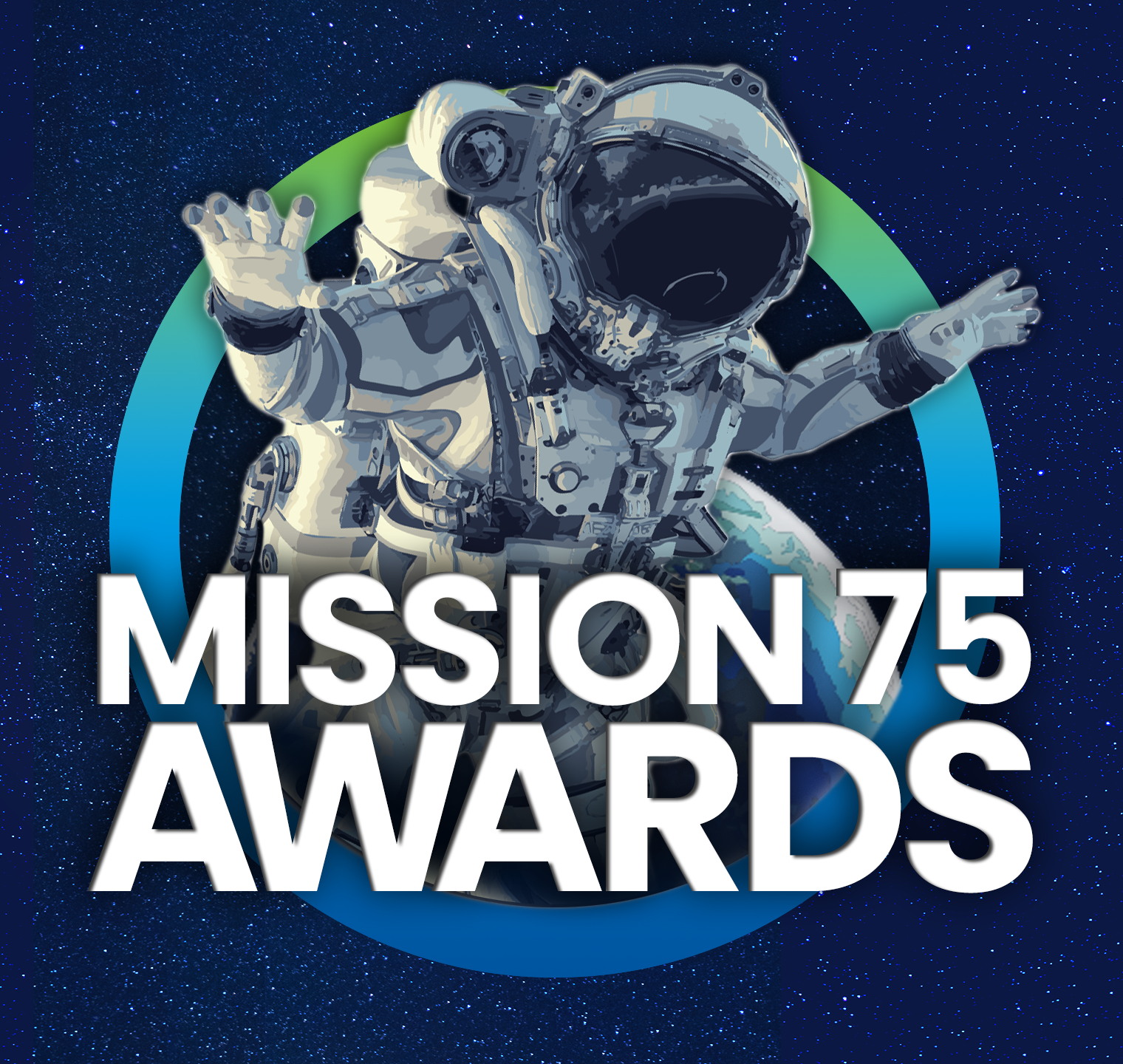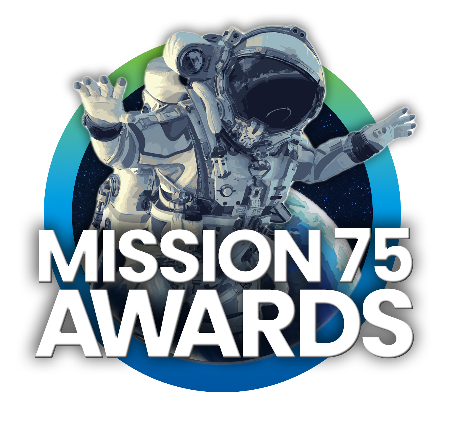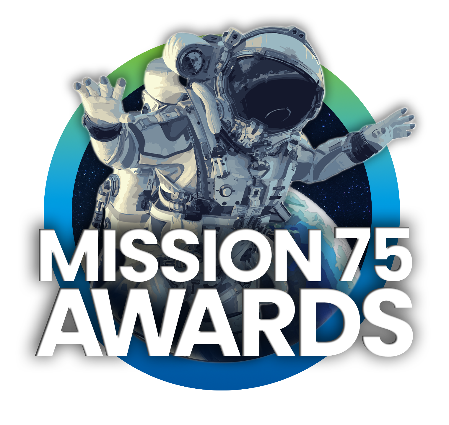 Er werd gevraagd een logo te ontwerpen voor de Mission75 awards met als inspiratie de "Zapp awards". Hierna moest ik voor de WebPage aansluitende logo's maken