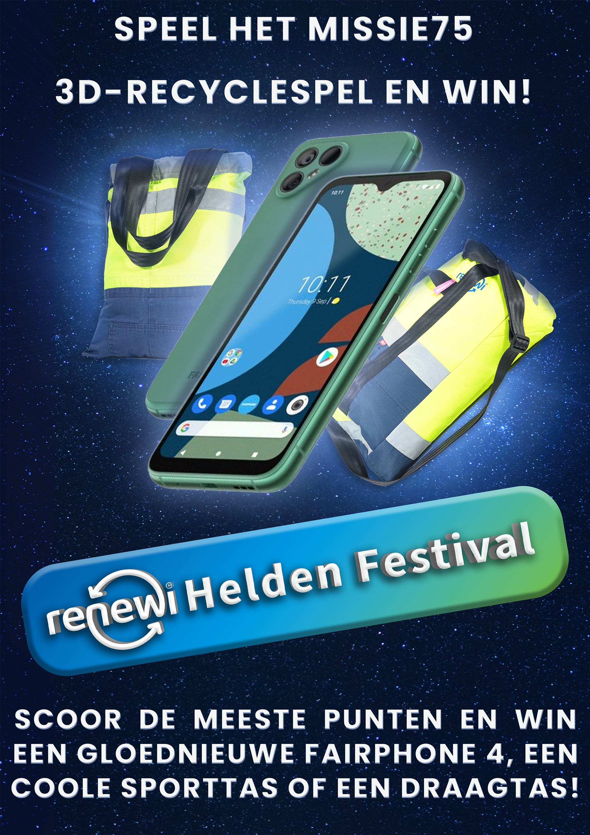 De doeken van de Mission75 stand op het Renewi Helden Festival zijn ontworpen om de stand te onderscheiden van de rest en de doelgroep aan te trekken. Hiernaast waren er prijzen te winnen en moest er een vloermat gemaakt worden.