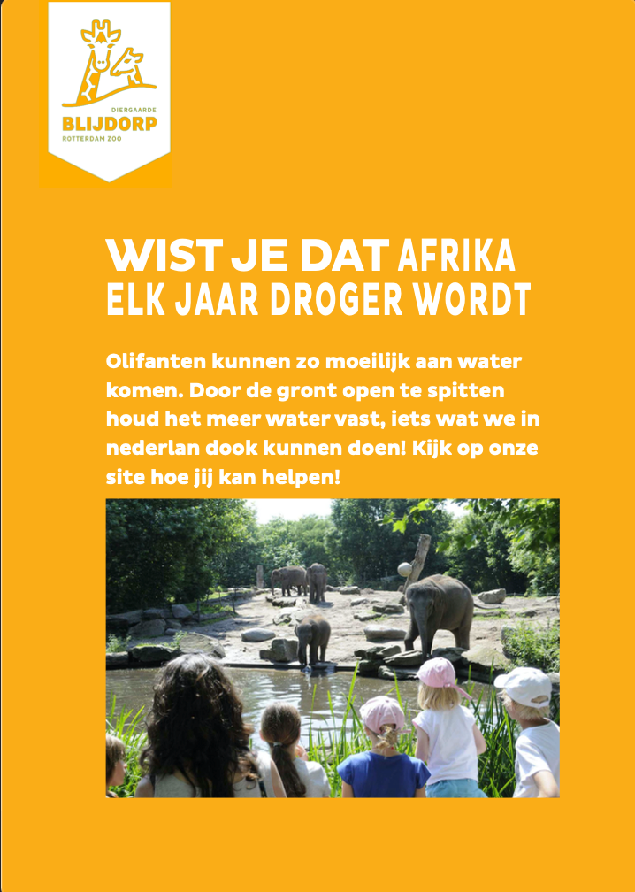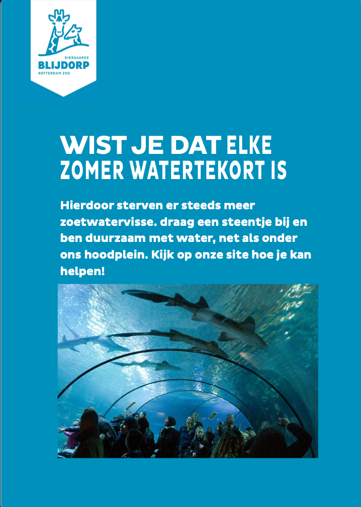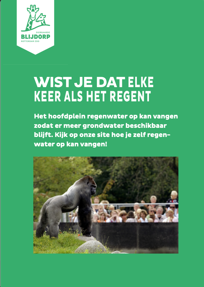 Een waterbuffer, ontworpen door de TU Delft, moest gepromote worden onder de dierentuin bezoekers. Deze promotie was vooral gericht op de jongere doelgroep omdat zij onze toekomst zijn en waterbesparing een eigentijds en duurzaam onderwerp is.
